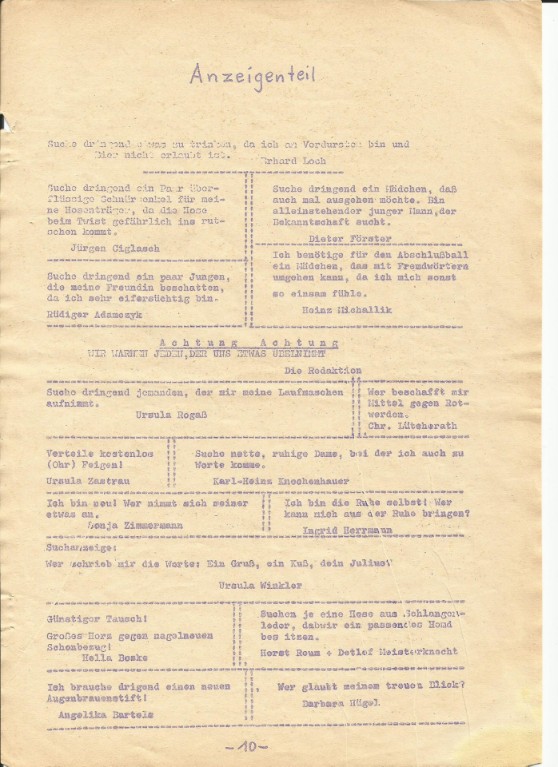Die Zeitung zu unserem Abschlussball 1965 und Ende der Schulzeit